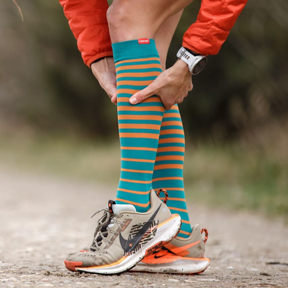 VIM & VIGR Compression Socks are knit with true graduated compression technology, which starts firmly at the ankle and gradually eases up the leg. This promotes increased blood flow to the heart and supports healthy circulation.